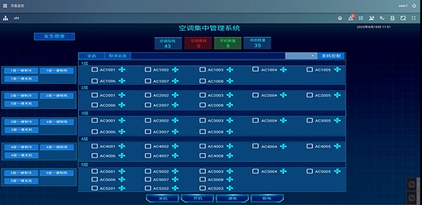 該系統內置了多種智能節能策略,能夠根據不同的時間段、季節和天氣情況,自動選擇最優的空調運行方案。在非教學時間段,如課間休息、午休或放學后,系統會自動將空調設置為節能模式或關閉狀態,減少不必要的能耗。同時,系統還可以根據室外溫度的變化,智能調節室內空調的溫度設定值,避免因室內外溫差過大而導致的能源浪費。此外,系統還支持與校園的其他能源管理系統進行集成,實現能源的統一調度和優化配置,進一步提高校園的整體能源利用效率。